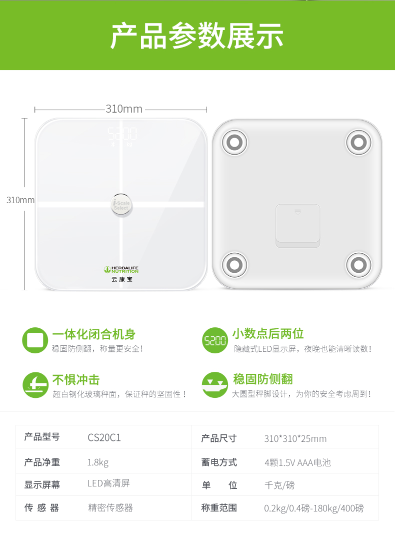 云康宝 体脂秤 CS20C1(白色)智能测脂肪