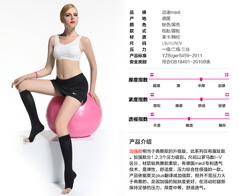 medi 静脉曲张袜(中筒)Plus加强型 肉色III号 医用三级压力