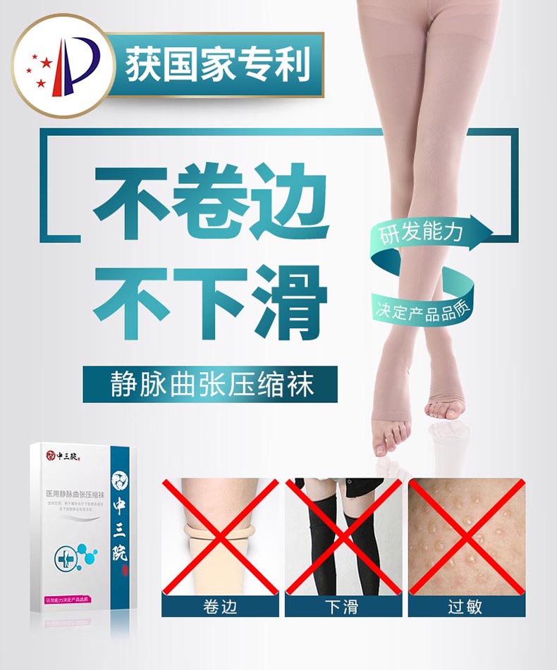 中三院 静脉曲张袜(中筒露趾)黑色XL码 医用二级治疗型 参考体重125-150斤