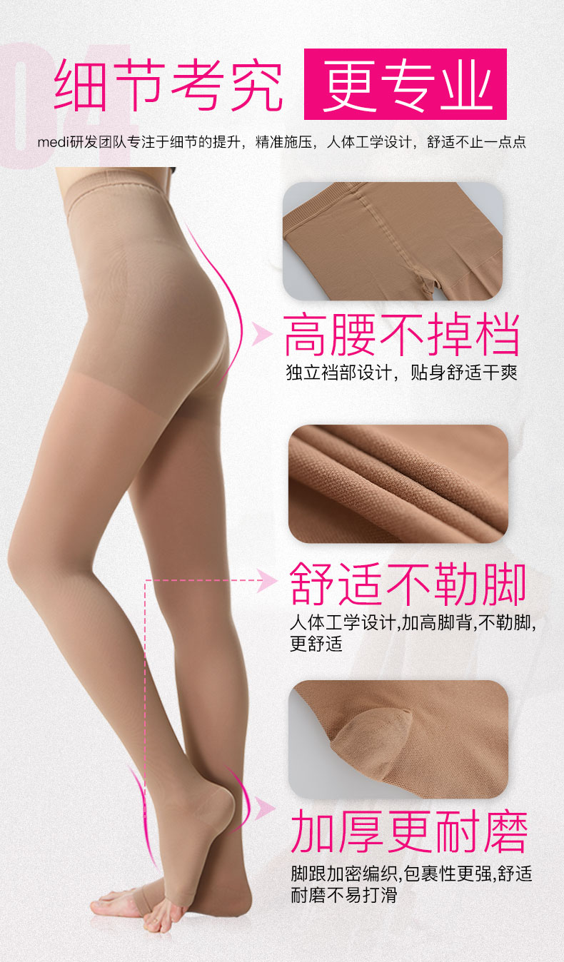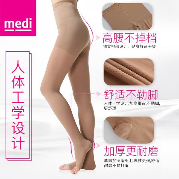 medi 静脉曲张袜(连裤露趾)黑色L号 医用二级压力