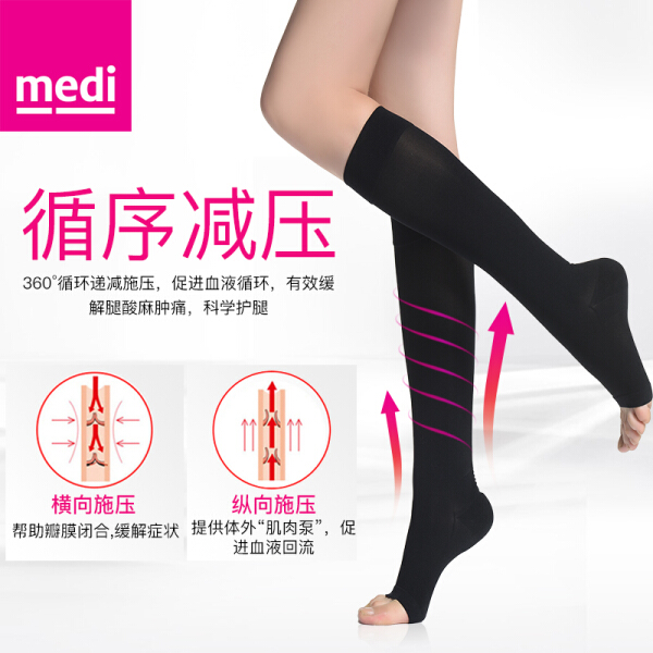 medi 静脉曲张袜(护小腿)duomed L号黑色 医用二级压力