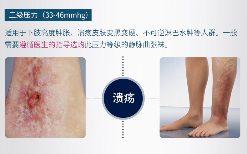 中三院 静脉曲张袜(护小腿)黑色XL码 医用一级治疗型 参考体重125-150斤