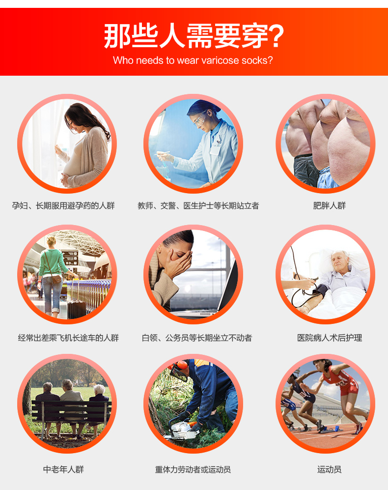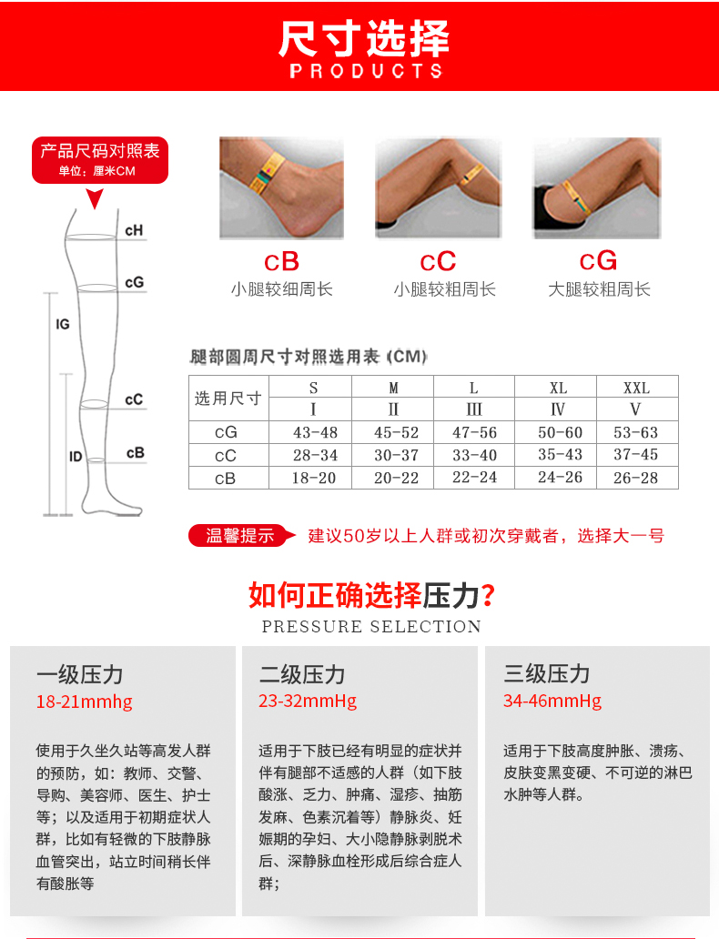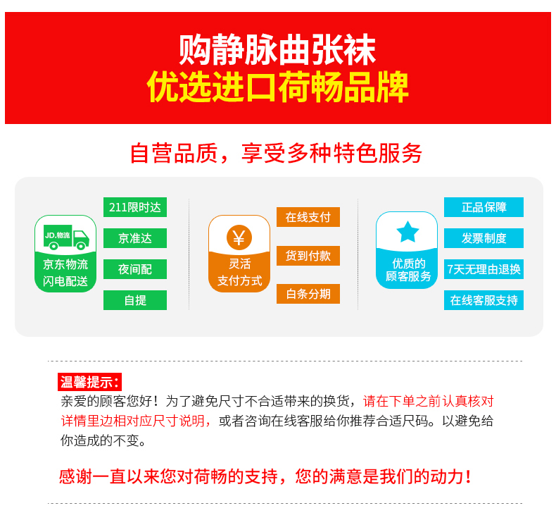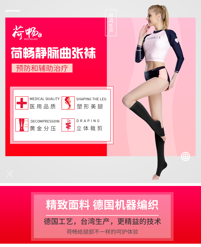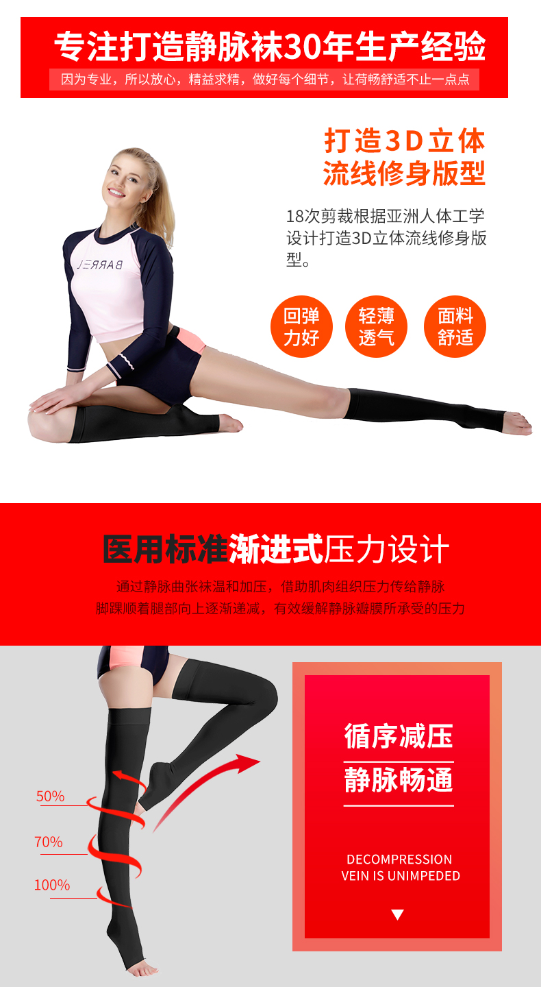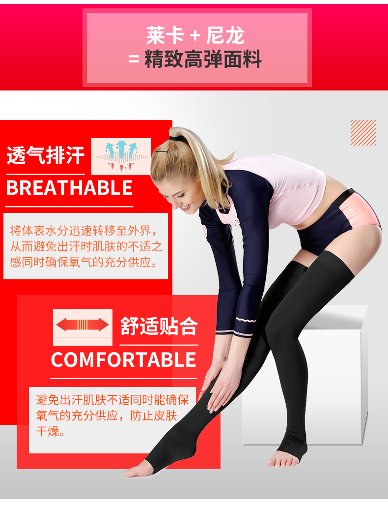 荷畅 静脉曲张袜(长筒)黑色L码 医用二级压力治疗型