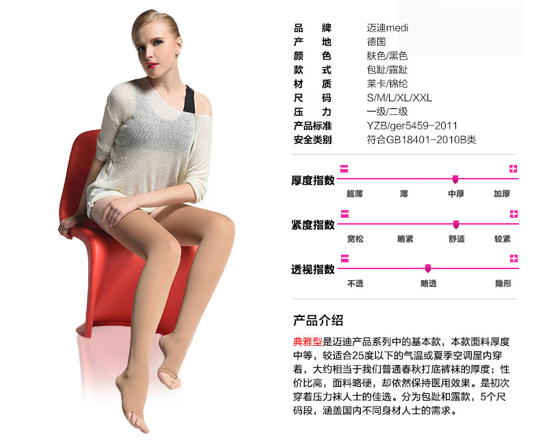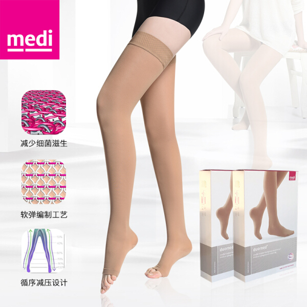 medi 静脉曲张袜(长筒包趾)黑色XXL号 医用二级压力【2双装】
