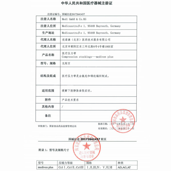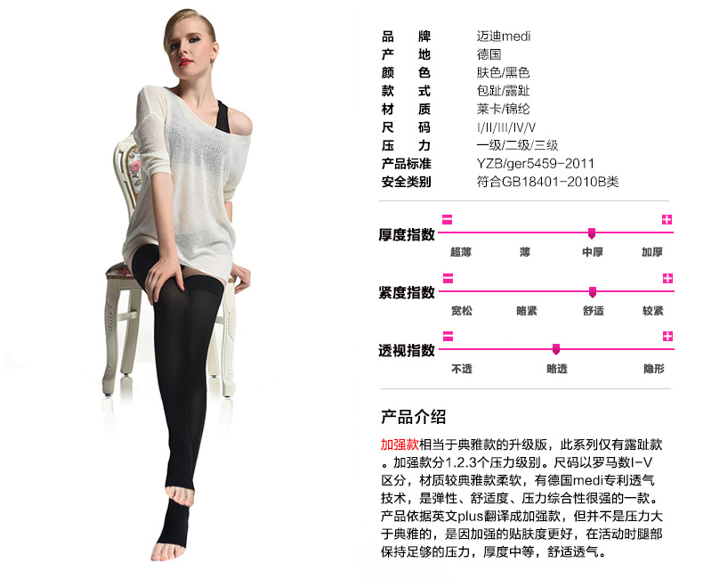 medi 静脉曲张袜Plus加强款(长筒)II号肉色 医用三级压力