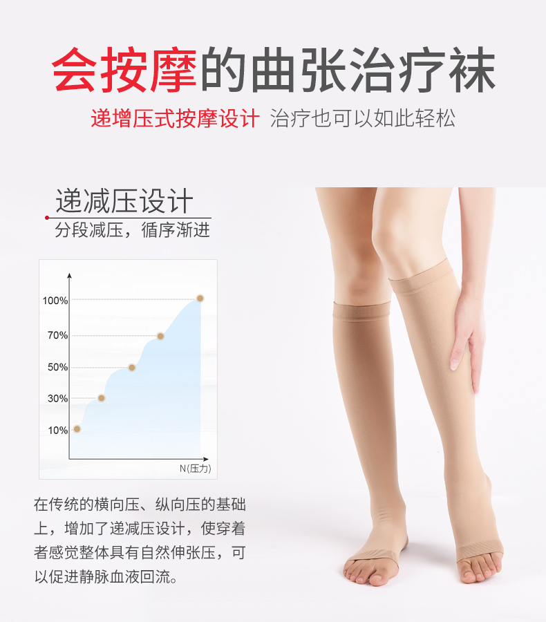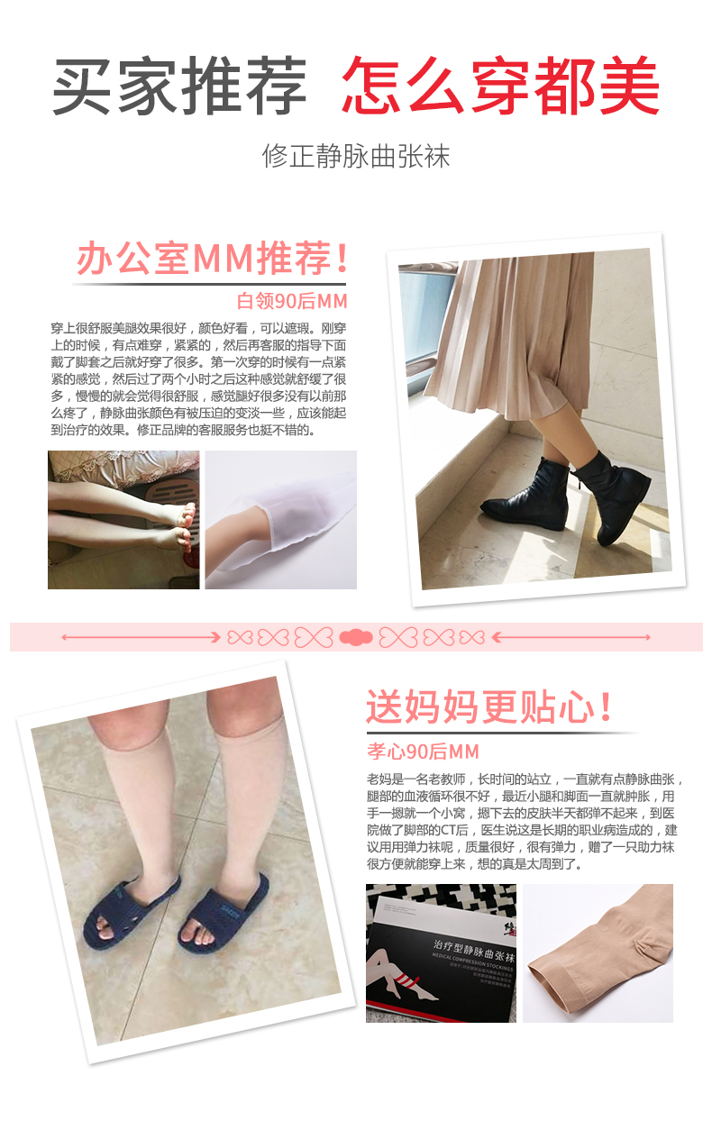 修正 静脉曲张袜(中筒)L码黑色 医用二级治疗型