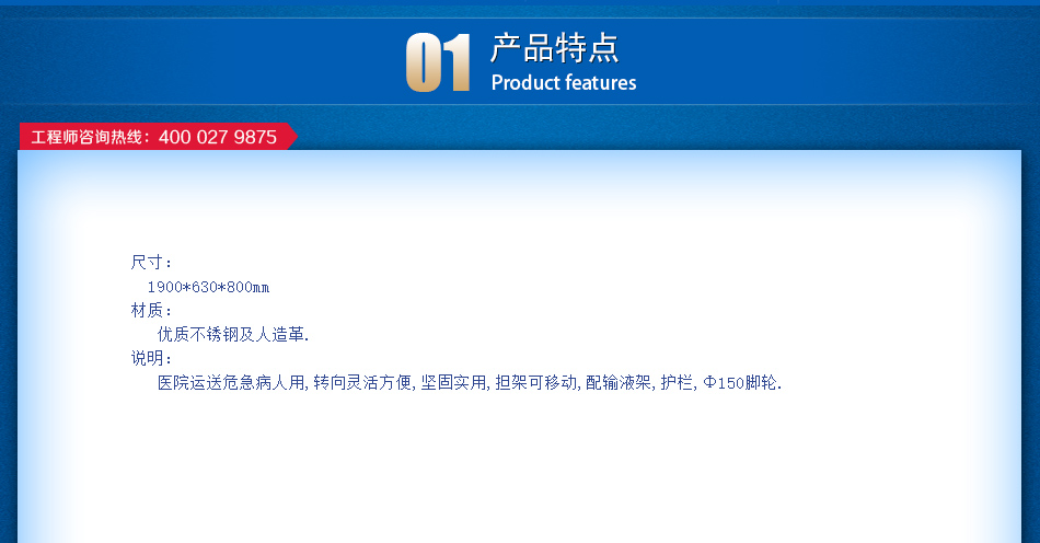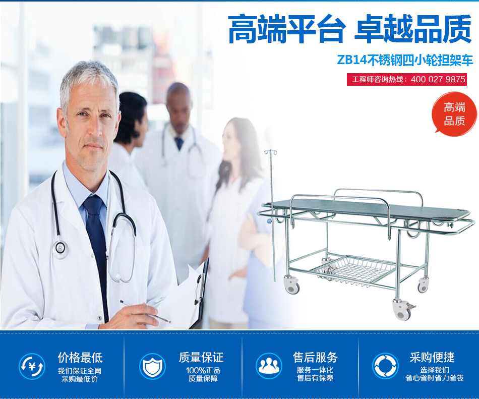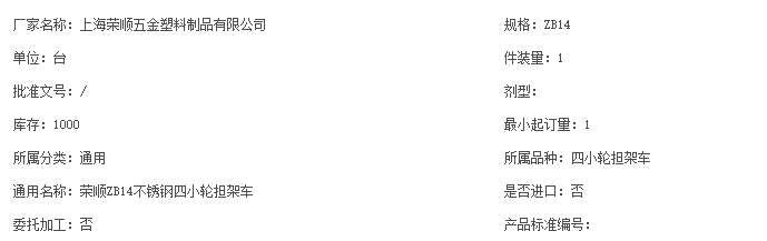 荣顺ZB14不锈钢四小轮担架车