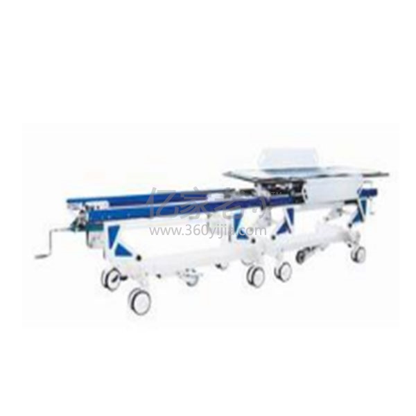 ●摇动床体C的摇杆,躺在上面的病人可平移至另一张床或手术台上