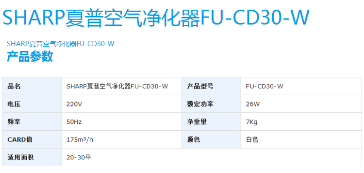 夏普(SHARP)空气净化器FU-CD30-W(白)