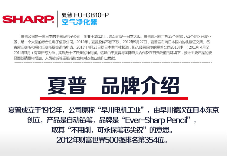 夏普(SHARP)空气净化器FU-GB10-P