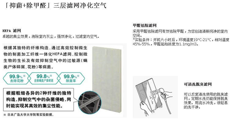 夏普空气净化器特有的技术 1.采用主动净化,被动净化双重净化技术 2.采用医用级净离子技术的空气净化器,对病毒有杀灭作用 3.可水洗除臭活性炭滤网 4.采用分子加湿技术的空气净化器 5.超静音技术的空气净化产品 |