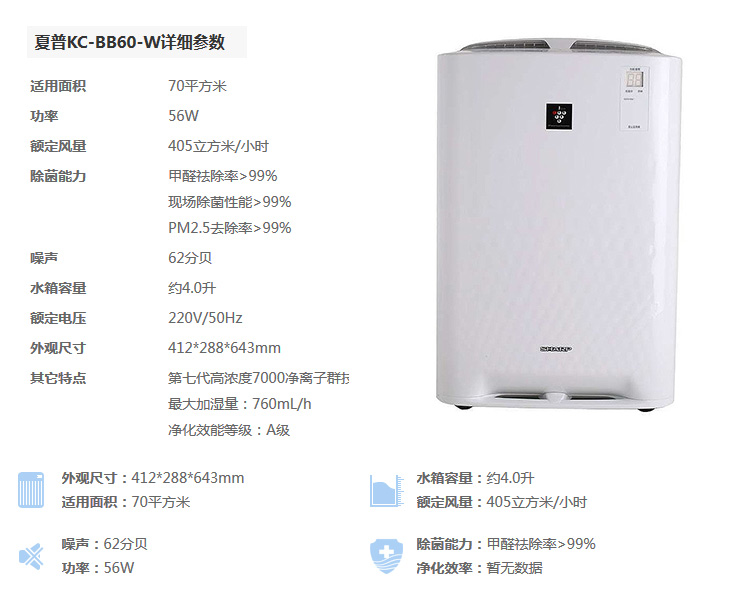 夏普(SHARP)空气净化器KC-BB60-W
