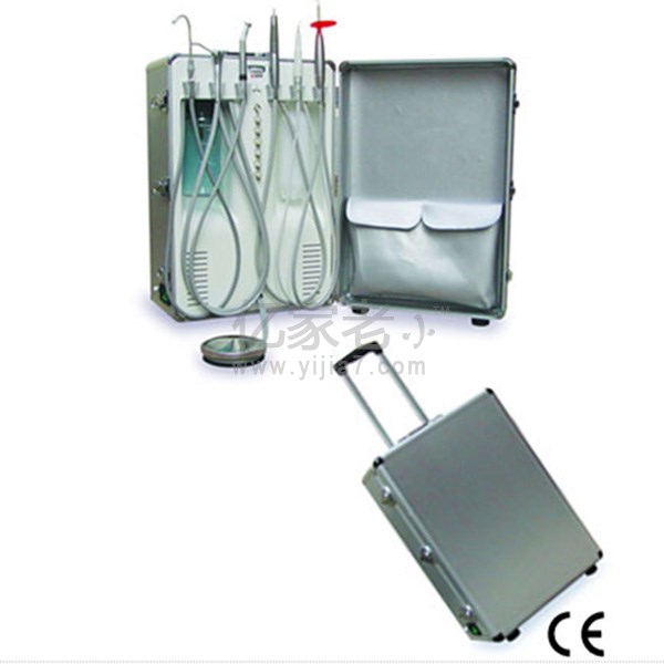 DHD-130 便携式牙科治疗机是一款新颖、美观、功能齐全、制作精良的便携式牙科设备。选用优质合金铝材料制作的便携式箱体坚固、美观、轻便,内部集成了光纤高速手机、低速手机、三用喷枪、吸唾器、超声波洁牙机、LED 光固化机、无油压缩机、储气罐、净水瓶、污水瓶和水、气、电控制系统等部件,所有的配置都安装在坚固的箱体内,便于运输,携带。重量:15-25KG(根据配置)
