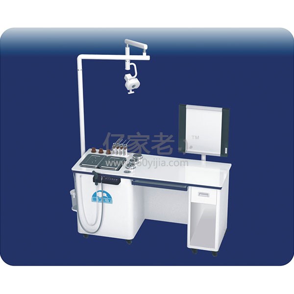 耳鼻喉诊治综合工作台ENT2251集成了耳鼻喉咽喉-头颈外科门诊检查、治疗所需的功能与器械。工作台配置具有技术的多功能一体化组合式气压枪,可方便的实现药液雾化、吹气、喷粉及冲洗(选配)功能;LED聚光斑照明灯寿命长且高色温更接近自然光;工作台面采用微晶石材料,具有玻璃的易清洁、耐刮花、防渗透的特点,可长久使用也可保持光洁如新。