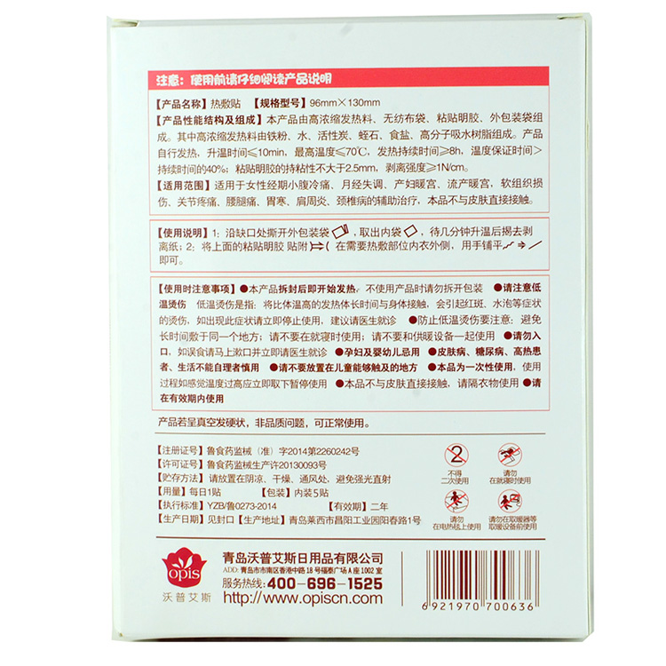 海氏海诺艾暖 热敷贴暖宫贴 宫寒经期暖宝发热贴 5贴装
