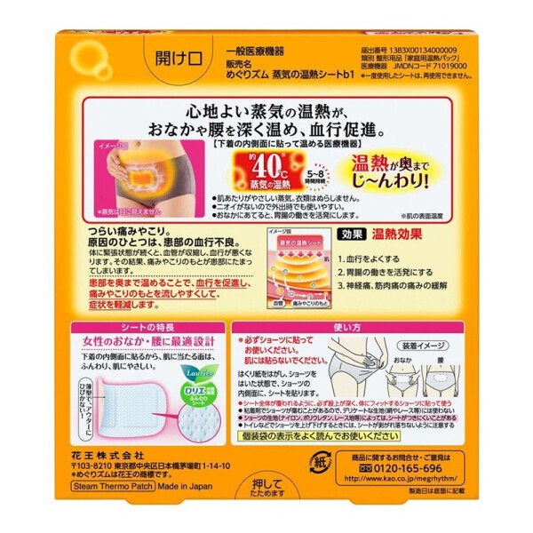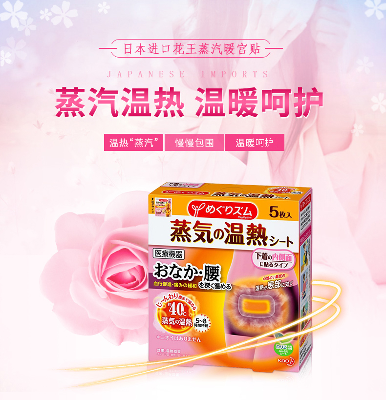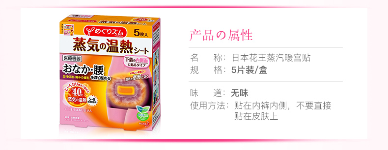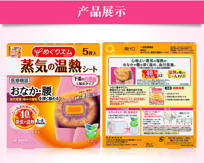 花王(KAO) 蒸汽温热热敷暖宫贴蒸汽贴暖宝宝贴 日本原装进口 5枚入无香型