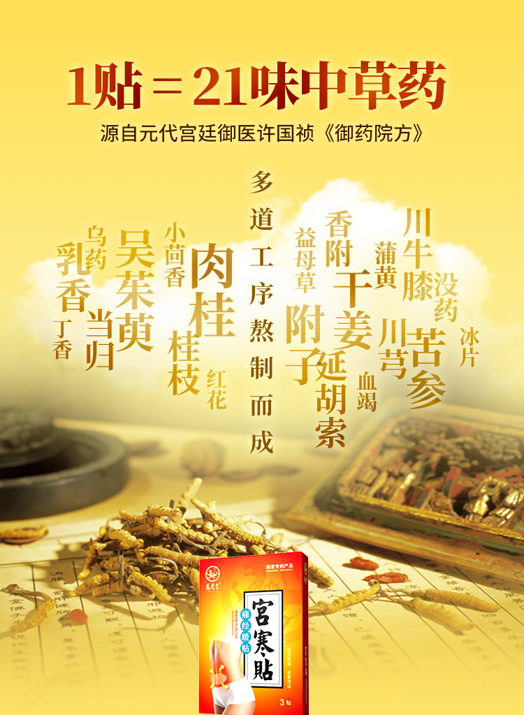 慈虎堂暖宫贴宫寒 痛经宫寒贴暖宝宝贴艾草益母草驱寒