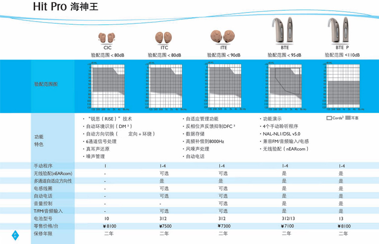 “锐思(RISE)”技术 自动环境识别(DM2) 自动方向切换(超级定向+环绕) 6通道信号处理 真耳声还原 噪声管理 适应管理功能 反相位声反馈抑制DFC2 数据存储 调频补偿到8000Hz |