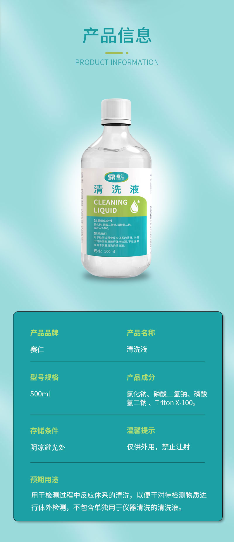 赛仁 清洗液(生理盐水)500ml/瓶