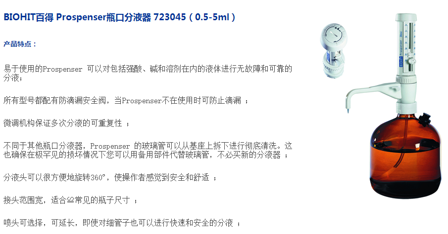 BIOHIT百得 Proline Prospenser瓶口分液器 723045(0.5-5ml)