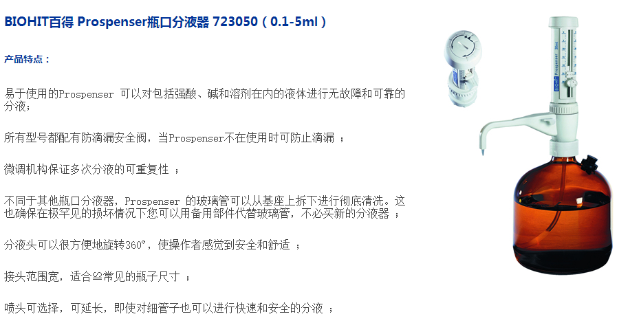 BIOHIT百得 Prospenser瓶口分液器 723050(0.1-5ml)