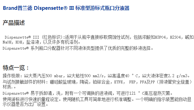 Brand普兰德 Dispensette III 标准型 游标可调式 瓶口分液器(4700151)