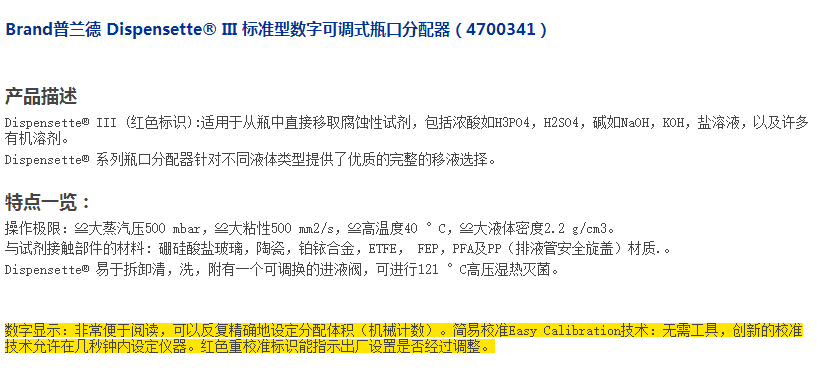 Brand普兰德 Dispensette III 标准型数字可调式瓶口分配器 1-10ml(4700341)