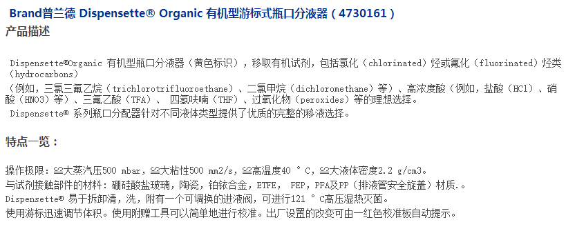Brand普兰德 Dispensette Organic 有机型游标式瓶口分液器 5-50ml(4730161)
