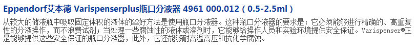 Eppendorf艾本德 Varispenserplus瓶口分液器 4961 000.012(0.5-2.5ml)