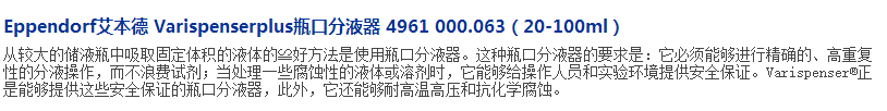 Eppendorf艾本德 Varispenserplus瓶口分液器 4961 000.063(20-100ml)