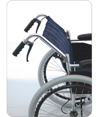 5.刹车大 轮应每轮均有刹车,当然像偏瘫者只能用一只手时,只好用单手刹车,但也可装延长杆,操纵两侧刹车。亿家老小商城提醒您刹车有两种:(1)凹口式刹车。此刹车可靠,但较费力。调整后在斜坡上也能刹住,若调到1级在平地上不能刹住为失效。(2)肘节式刹车。利用杠杆原理,通过几个关节而后制动,其力学优点比凹口式刹车强,但失效较快。为加大患者的刹车力,常在刹车上加延长杆,但此杆易损伤,如不经常检查会影响。