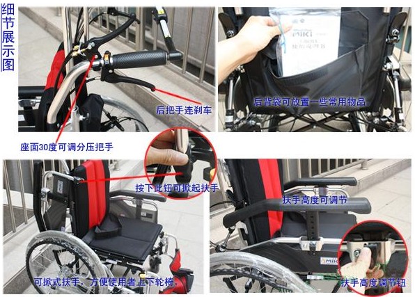 产品功能 兼备分压,可躺机构设计 全方位调节功能,提高生活质量 抱闸刹车 折背机构 可打开式护腿 可拆卸座背垫 可调式背靠 避震万向轮 高度可调式扶手 |