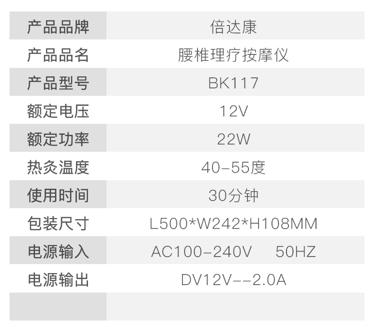 倍达康 腰部按摩器腰椎理疗仪带加热保暖护腰带曲度腰间盘突出治疗仪