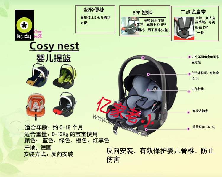 商品名称:Kiddy Cosy Nest 提篮式儿童汽车座椅