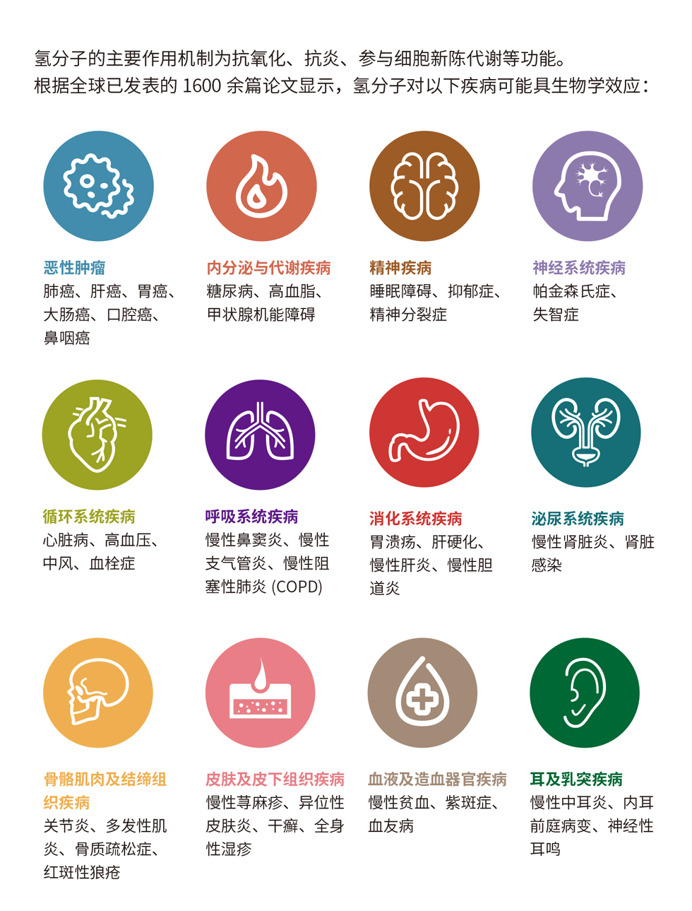 - 运用氢分子可“化学还原”有害自由基的特性,为抗炎抗氧化提供有效的途径。