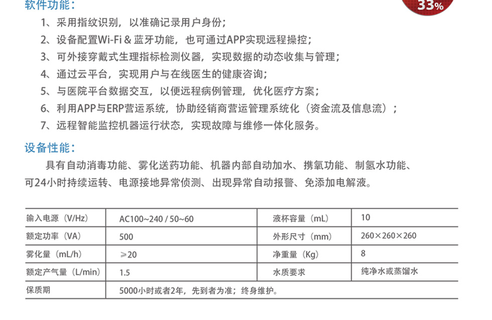 - 采用零气腔设计模式,以避免氢氧气体的累积;利用雾化水还能避免干燥、静电引起的自燃以确保使用的性。
