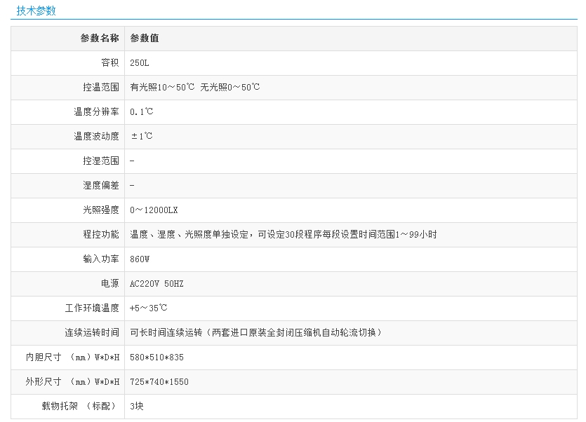 一恒 光照培养箱-智能化可编程(MGC-250BPY-2)