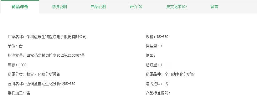 迈瑞全自动生化分析仪BS-380