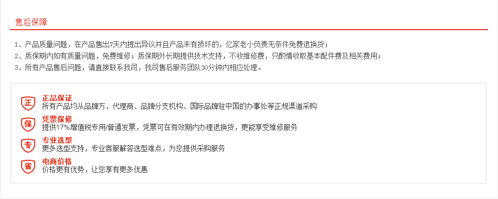 注: 产品质量问题,在产品售出7天内提出异议并且产品未有损坏的,亿家老小负责无条件免费退换货;质保期内如有质量问题,免费维修;质保期外长期提供技术支 持,不收维修费,只酌情收取基本配件费及相关费用;所有产品售后问题,请直接联系我司(7x24小时热线:400-027-9875),我司售后服务团队 30分钟内相应处理。