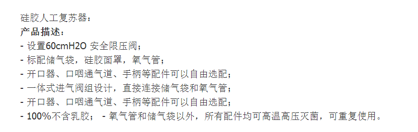 天祚牌硅胶/PVC医用简易呼吸器TW8111