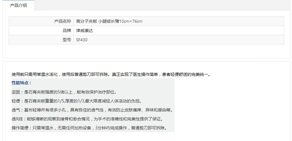 津威康达 高分子夹板 小腿或长臂10cm×76cm SF430