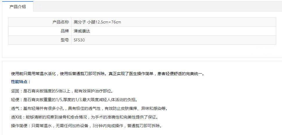 津威康达 高分子 小腿12.5cm×76cm SF530