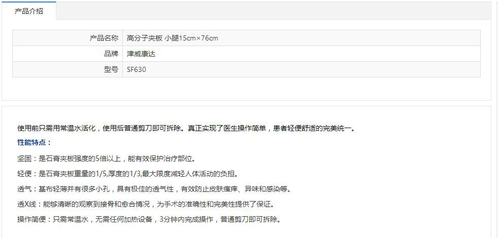 津威康达 高分子夹板 小腿15cm×76cm SF630