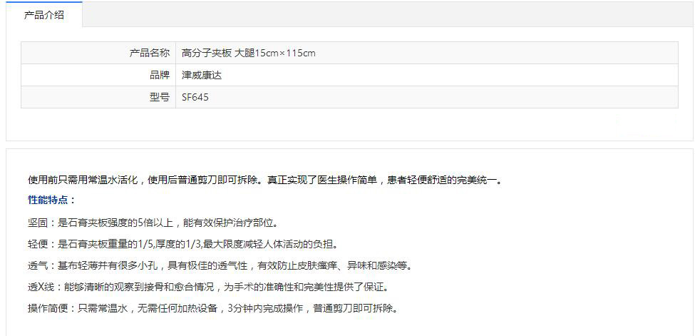 津威康达 高分子夹板 大腿15cm×115cm SF645