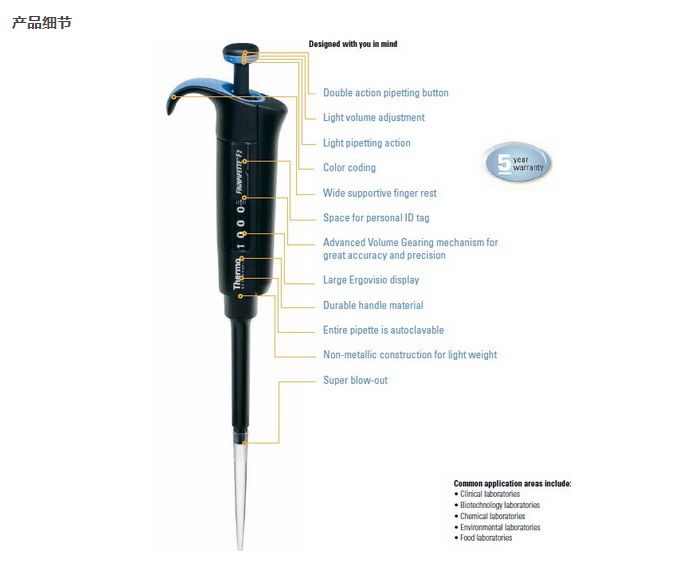 准确度是衡量移液器重要的标准之一,Finnpipette F2 专注于不断提高移液器准确性,将微调和粗调统一,提高移液器的准确性。通过将液量联动装置与移液器腔体分离,使其处于一个相对恒温的环境,避免了手部温度对移液度的影响。从而移液器的准确度、性以及耐用性都得到了较大的提升。
