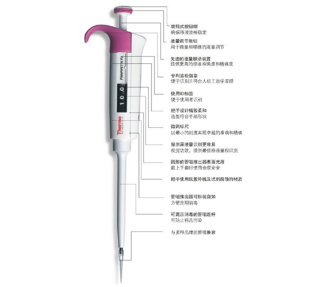 Thermo Scientific 赛默飞世尔 Finnpipette F3 单道移液器 粉红 10ul(4640000)