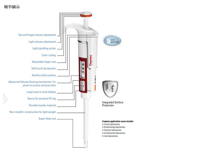 同时,该材料使移液器本身重量极轻,经常使用亦不会疲劳。