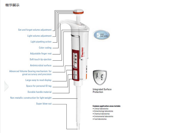同时,该材料使移液器本身重量轻,经常使用亦不会疲劳。