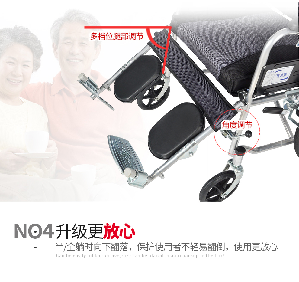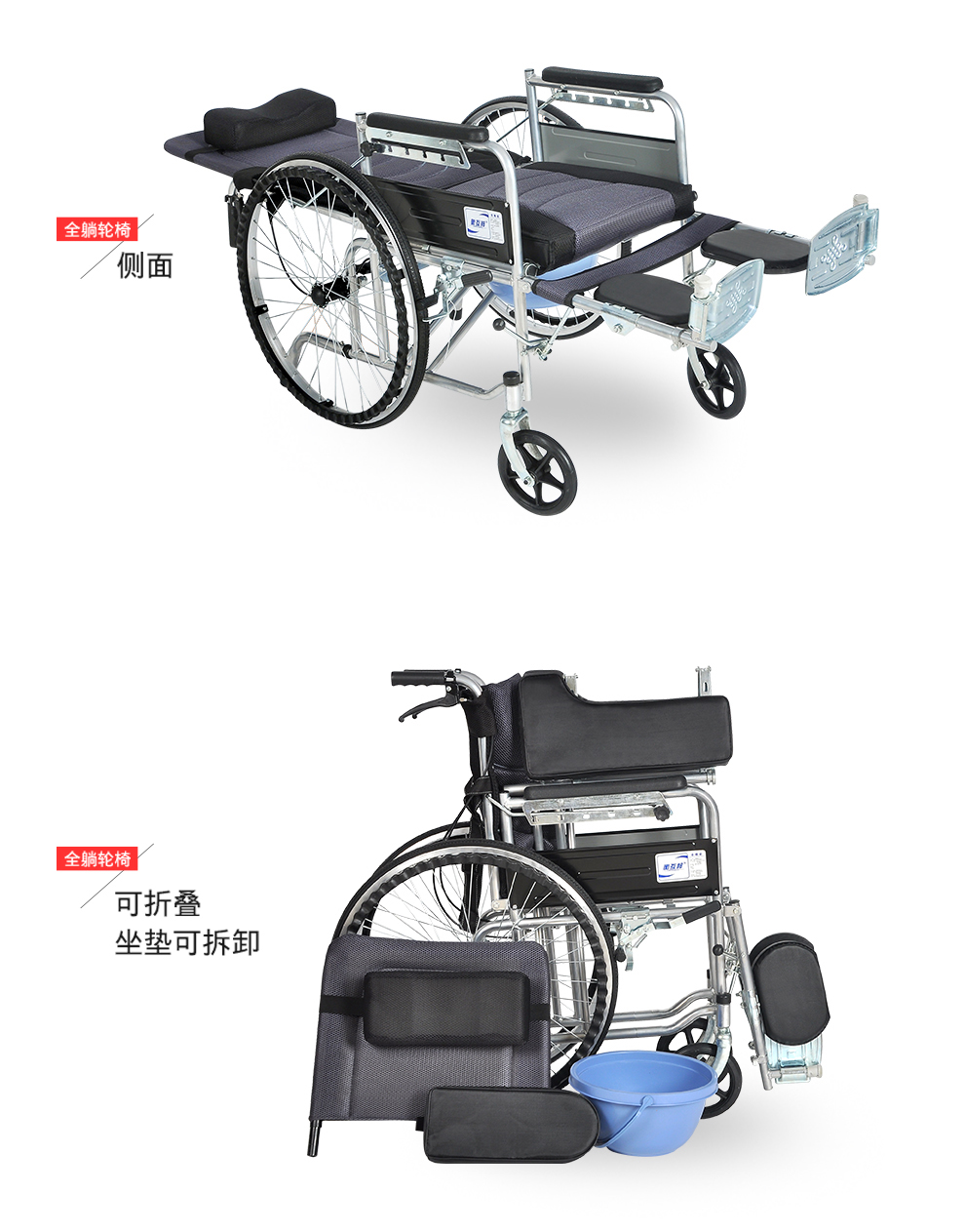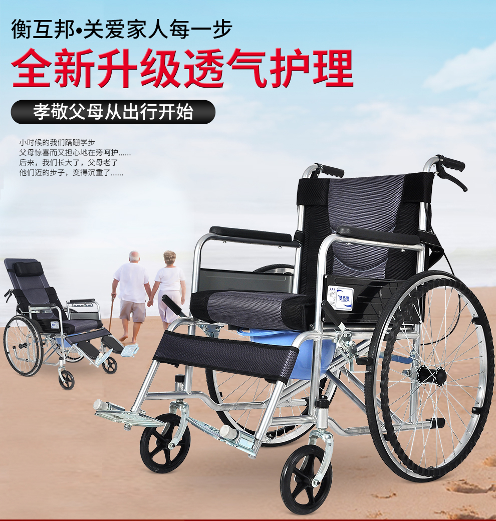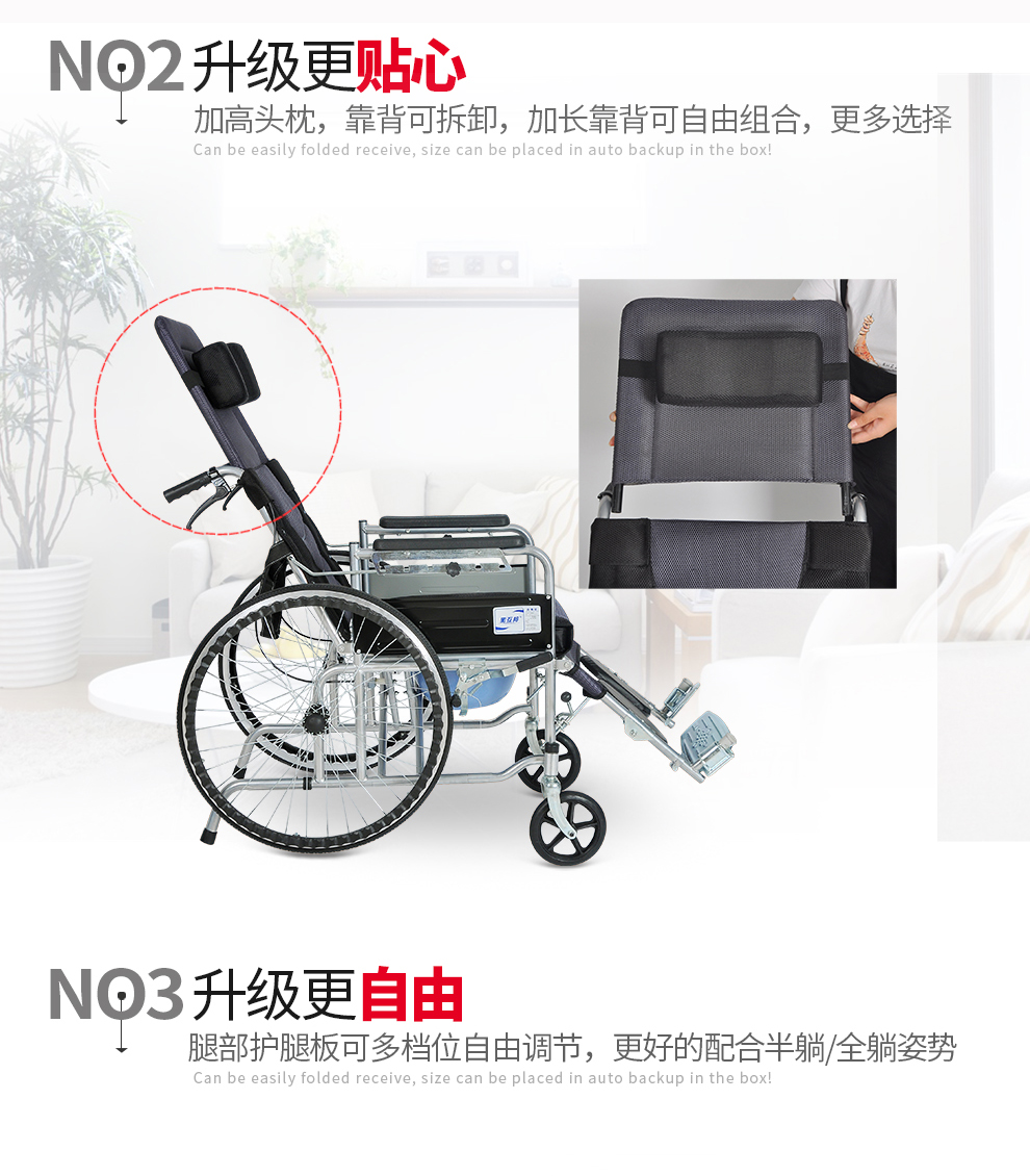 衡互邦 轮椅(灰色半躺款) 折叠带坐便半躺