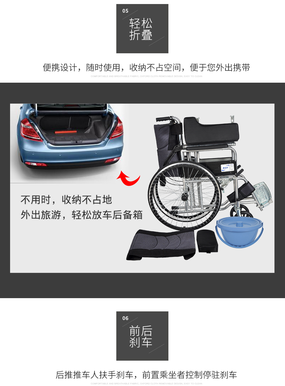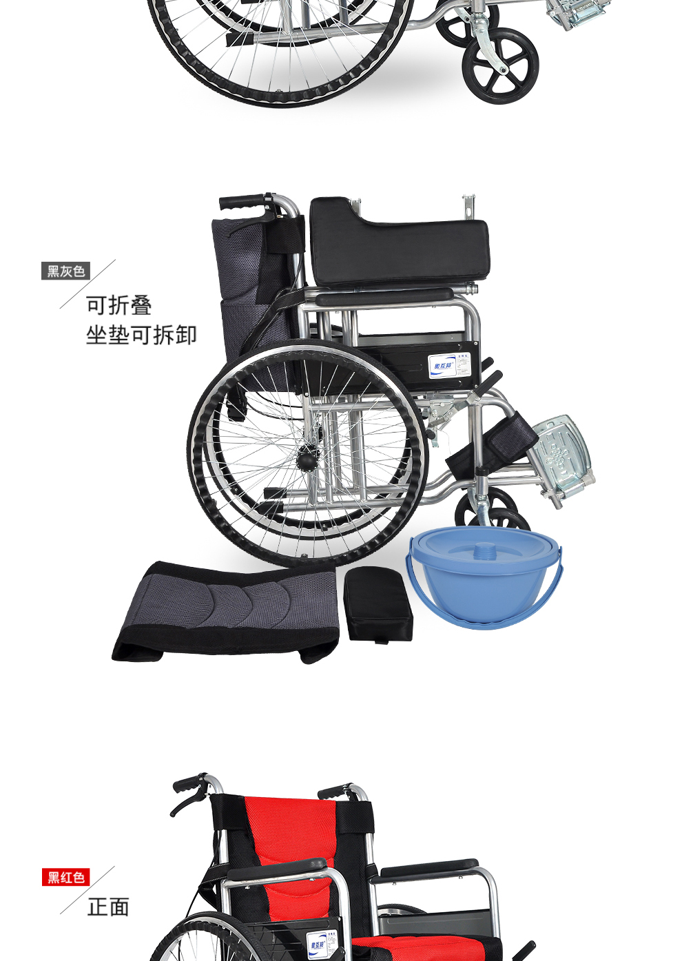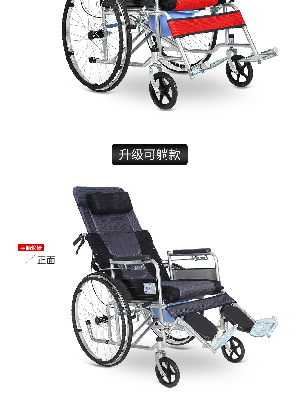 衡互邦 轮椅(灰色半躺款) 折叠带坐便半躺